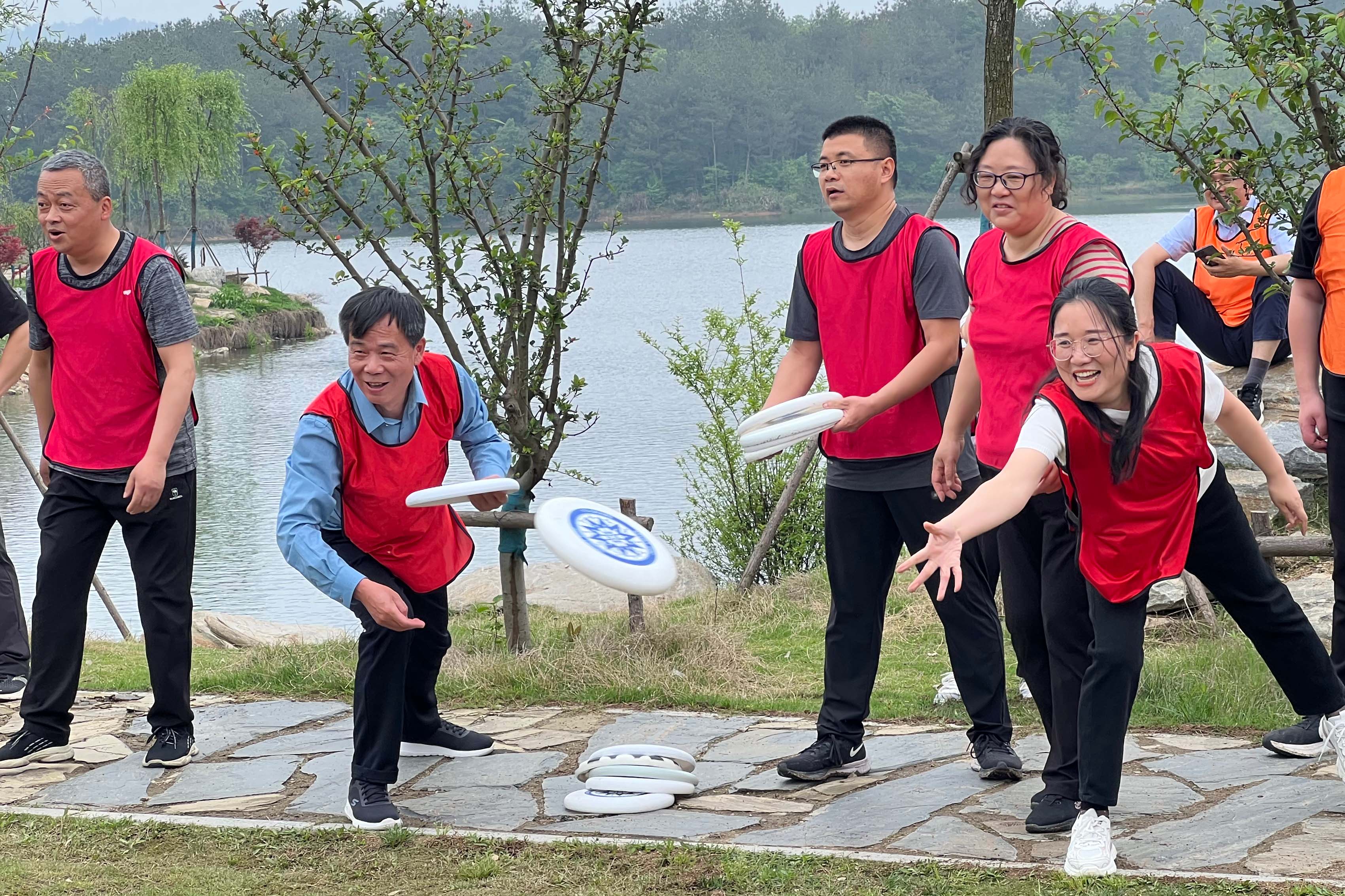 經(jīng)過短暫的休整、破冰環(huán)節(jié),在專業(yè)教練的指導下,全體人員迅速分為三支小隊,正式體驗以“飛盤”為主題的游戲環(huán)節(jié)。本次設計游戲項目旨在考驗團隊協(xié)作能力,通過“草帽連連看”、“一網(wǎng)情深”、“飛盤九宮格”、“飛盤不倒翁”等趣味游戲,充分發(fā)揮了大家團結(jié)友愛、拼搏互助的精神,展現(xiàn)了積極向上的良好風貌。同場競技,精彩紛呈,趣味十足,每個人臉上都洋溢的笑容,最終“王者隊”搏得了冠軍頭銜,收獲了其他兩支隊伍的喝彩。