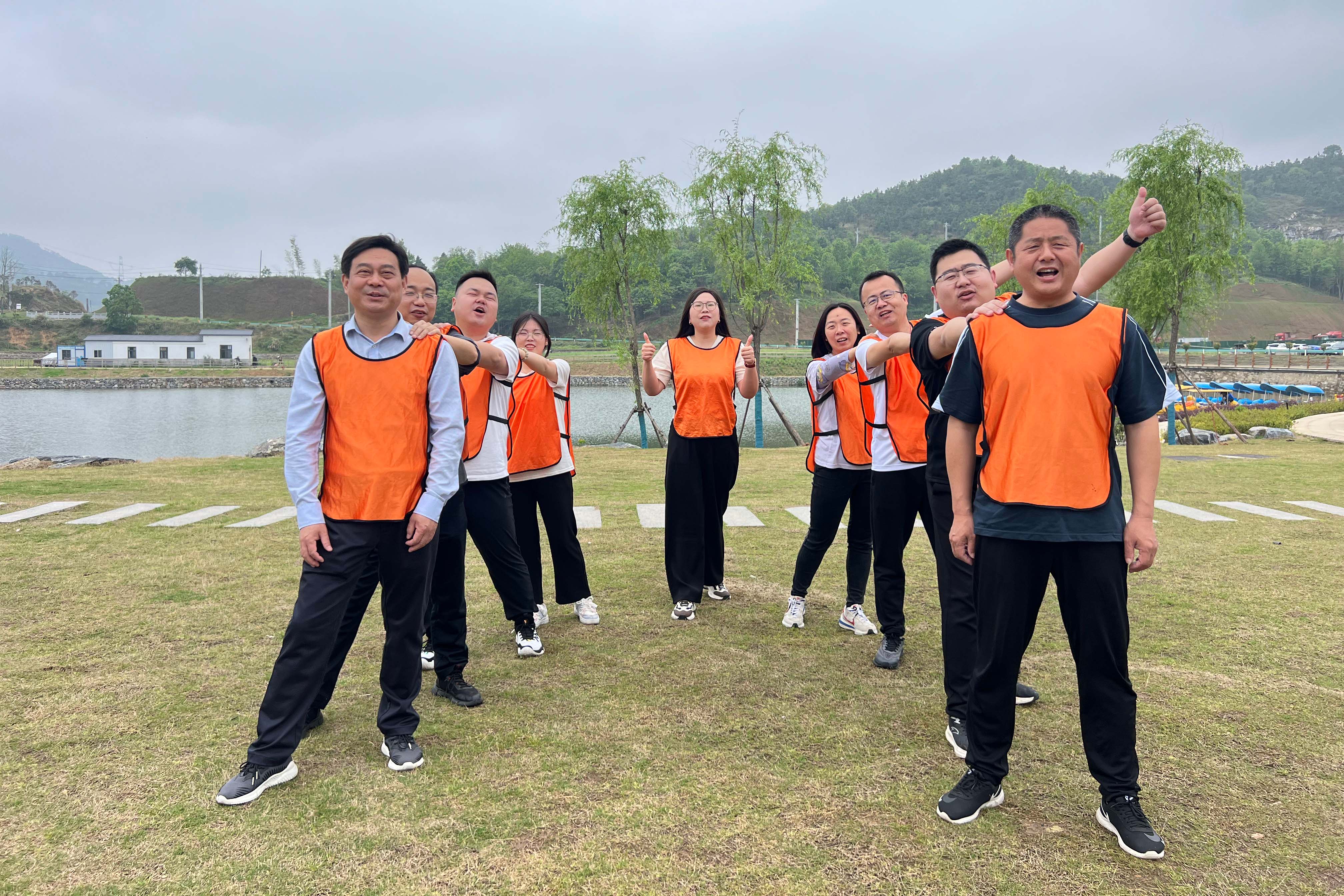 上午9:30,公司全體干部職工乘車來到團建地點,露營地四周群山環(huán)繞、濃綠交翳,大家置身其中,能夠看到靈動的山川、清澈的湖水,享受新鮮的空氣。