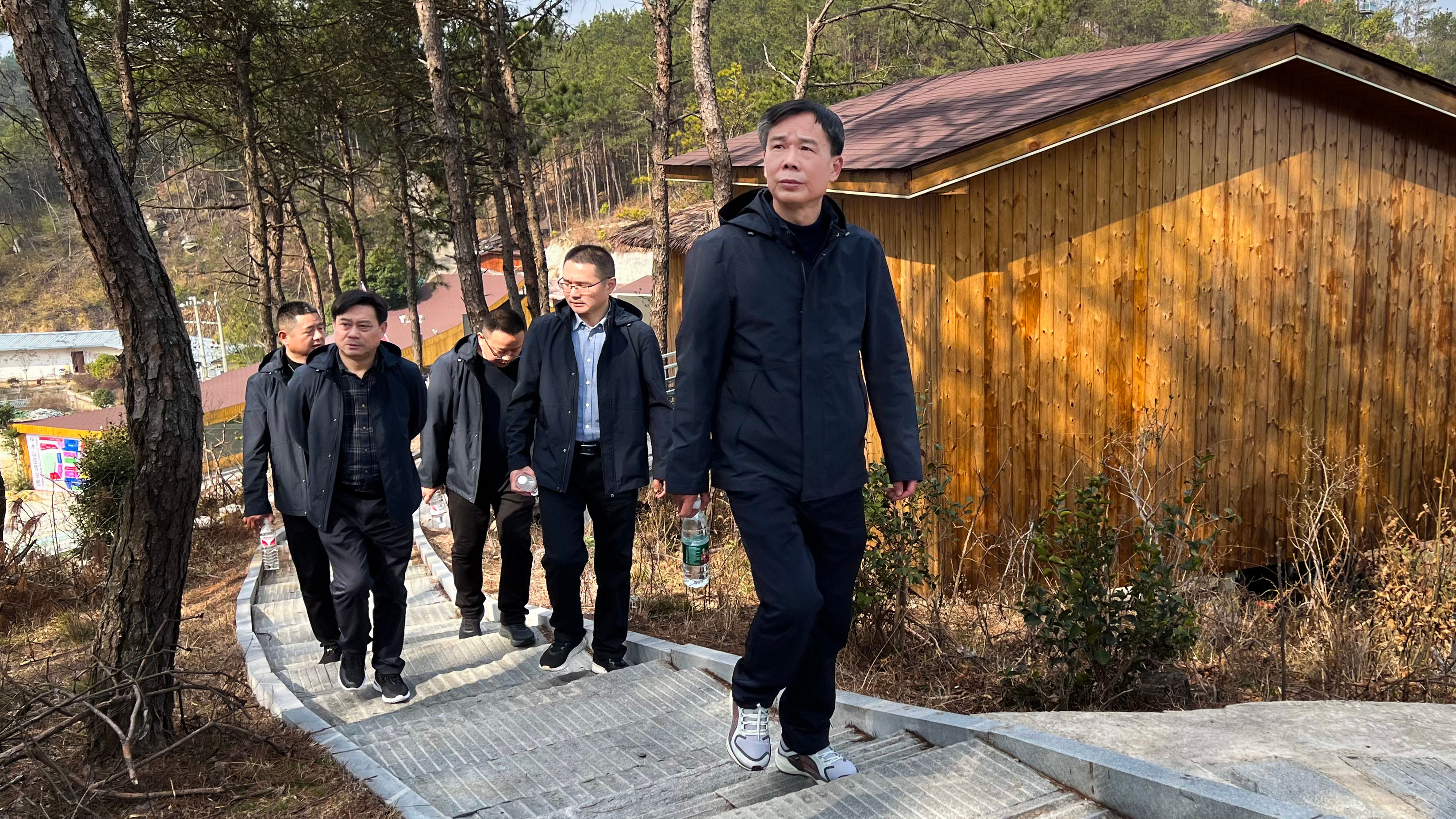 充分熱身后,在公司黨總支書記、執(zhí)行董事、總經(jīng)理何愛良帶領(lǐng)下,大家興致勃勃向山頂行進(jìn)。在這個季節(jié),光照在萬物上,一切都是欣欣然、活潑潑的樣子,大家三五成群結(jié)伴而行,踩著林蔭間的階梯而上,在山野間徒步,打開五感,享受風(fēng)的吹拂、沁人的負(fù)氧離子,滿載春日能量,一路上談笑風(fēng)生。經(jīng)過努力攀爬,終于到達(dá)了山頂觀景臺,這里是觀賞白蓮河“千島湖”美景的最佳觀賞點。