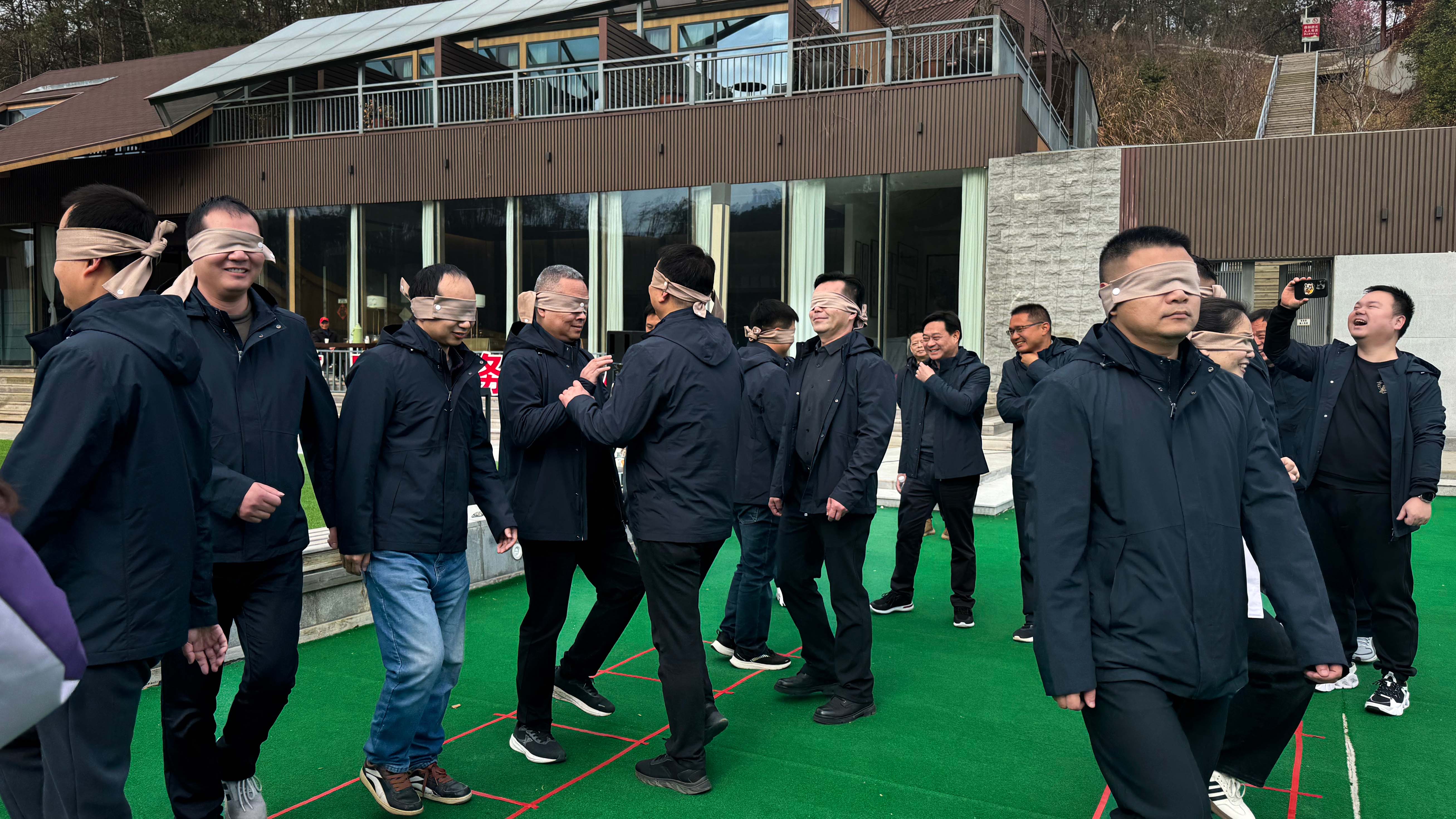 在正式徒步登山之前,大家進(jìn)行了一場趣味滿滿的熱身活動——“蒙眼原地踏步走”。原地踏步本是一項簡單的運(yùn)動,但附加上蒙眼這一特殊條件,便讓人有些“摸不著北”,隨著不少同志先后“出圈”,大家笑得前合后仰,現(xiàn)場氣氛火熱非凡。