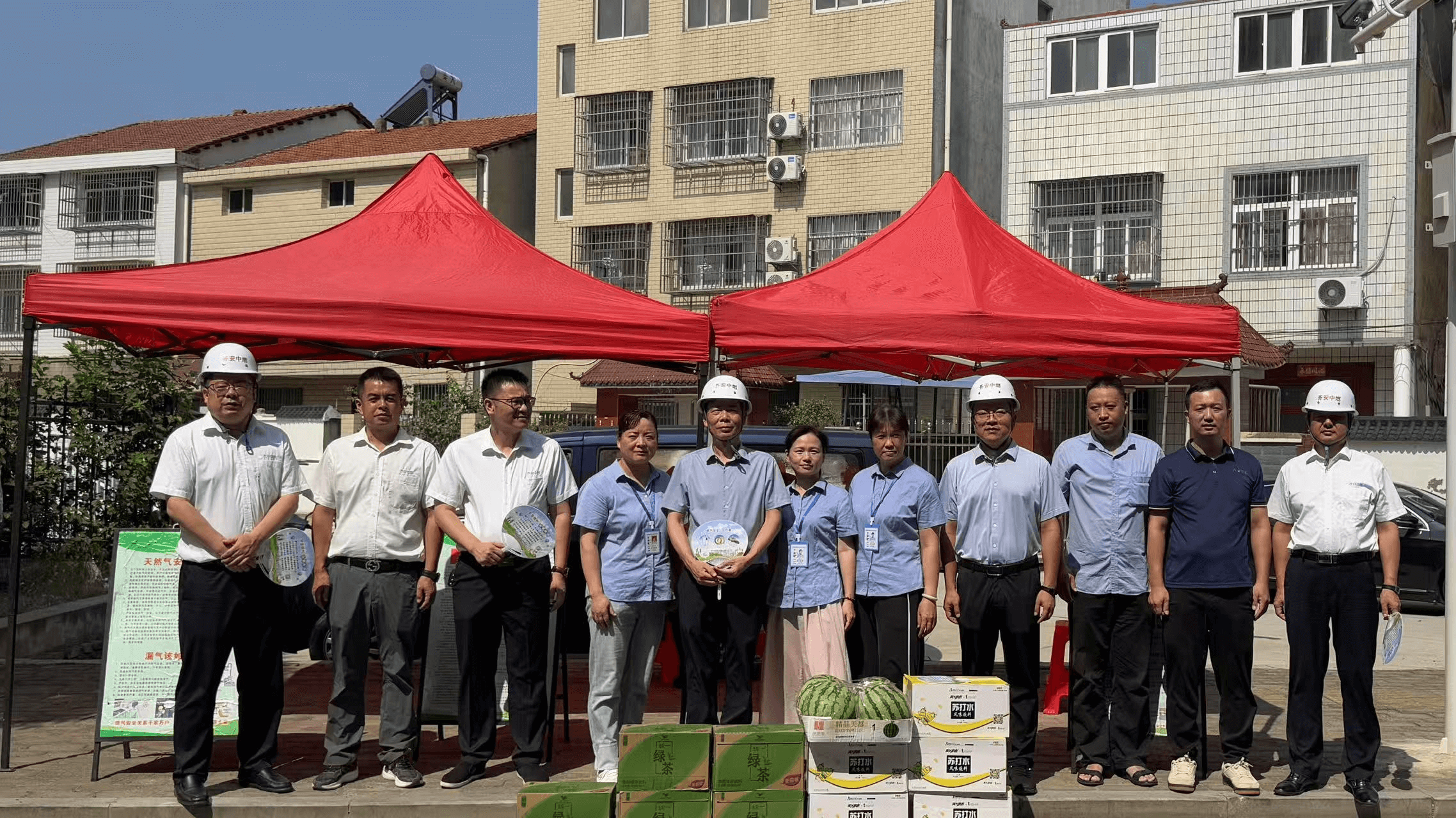 為切實(shí)做好高溫天氣下一線作業(yè)人員的防暑降溫工作,傳遞組織的關(guān)懷與溫暖,保障施工人員身體健康和安全生產(chǎn)。7月11日上午,黃岡國控能源有限公司黨總支書記、執(zhí)行董事、總經(jīng)理何愛良帶隊(duì)深入項(xiàng)目一線,開展高溫慰問和安全檢查活動,為堅(jiān)守在一線的燃?xì)馊怂腿ハ娜涨鍥。湖北登超建筑工程有限公司董事長陳群,黃岡齊安中燃天然氣有限公司總經(jīng)理聞名,黃岡齊安中燃天然氣有限公司黨支部書記、執(zhí)行總經(jīng)理羅瑋等參加了慰問活動。